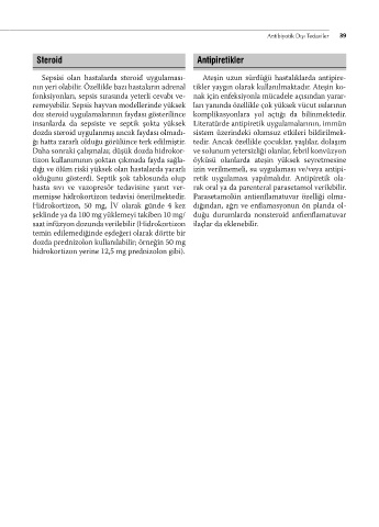 Sepsisi olan hastalarda steroid uygulaması- Ateşin uzun sürdüğü hastalıklarda antipire-