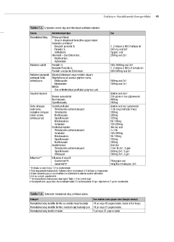 Tablo 7.1. Erişkinde cerrahi dışı antimikrobiyal profilaksi rejimleri.