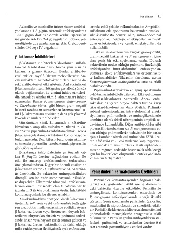β-laktamaz inhibitörlerinin en önemli kat- için bu bakterilerce oluşturulan enfeksiyonlarda