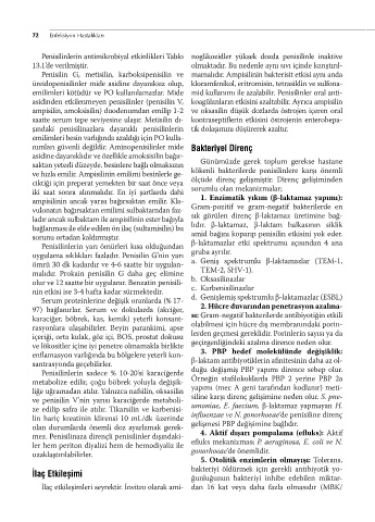 ömrü 30 dk kadardır ve 4-6 saatte bir uygulan- a. Geniş spektrumlu β-laktamazlar (TEM-1,