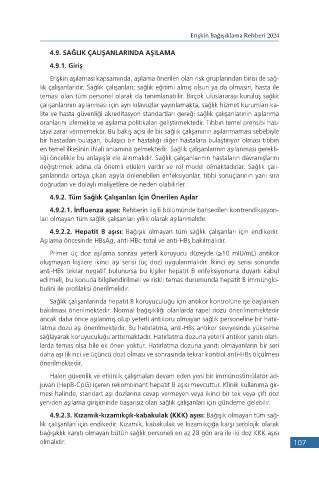 4.9.2.2. Hepatit B aşısı: Bağışık olmayan tüm sağlık çalışanları için endikedir.