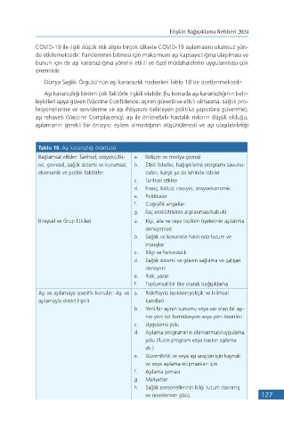 Dünya Sağlık Örgütü’nün aşı kararsızlık nedenleri Tablo 18’de özetlenmektedir.