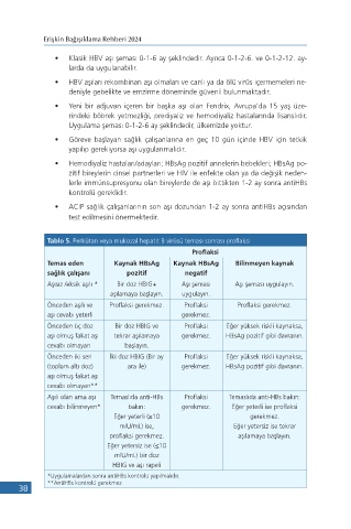 tablo 5. Perkütan veya mukozal hepatit B virüsü teması sonrası proflaksi