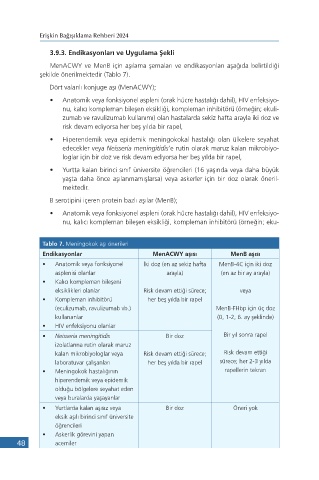 tablo 7. Meningokok aşı önerileri