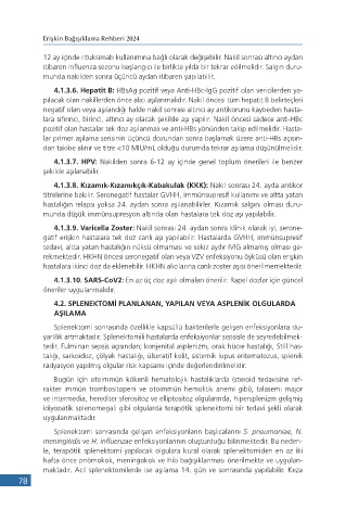 maktadır. Acil splenektomilerde ise aşılama 14. gün ve sonrasında yapılabilir. Keza