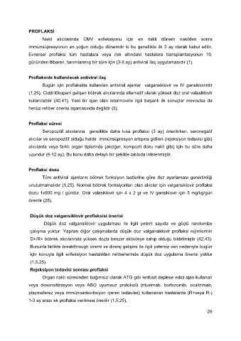 unutulmamalıdır (1,25). Normal böbrek fonksiyonları olan alıcılar için valgansiklovir proflaksi