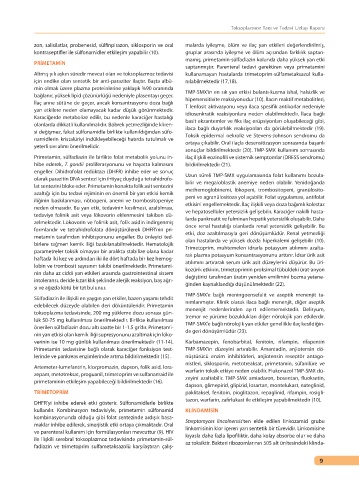 lobin ve trombosit sayısının takibi önerilmektedir. Primetami- kozürik etkinin, trimetoprimin proksimal tübüldeki ürat-anyon
