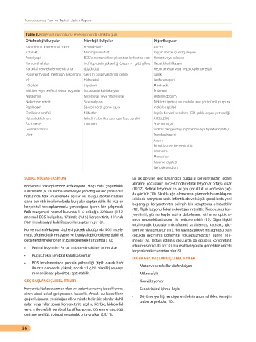 Tablo 2. Konjenital toksoplazma enfeksiyonunda klinik bulgular