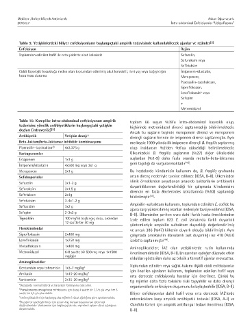Tablo 9. Yetişkinlerdeki biliyer enfeksiyonların başlangıçtaki ampirik tedavisinde kullanılabilecek ajanlar ve rejimler [5]