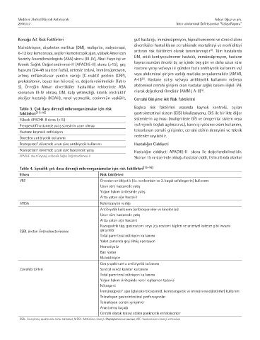 Tablo 3. Çok ilaca dirençli mikroorganizmalar için risk Başlıca risk faktörleri arasında kaynak kontrolü, açılan