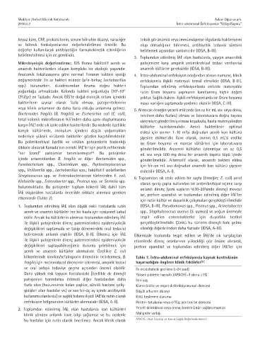 kökenlerinde kinolon/sefalosporin direncinin belirlenmesi, B. Tablo 7. İntra-abdominal enfeksiyonda kaynak kontrolünün